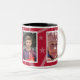 Photo mugg med dekorativt gräns har plats för tre av dina favoritfotografier. Varje foto är inramat med vitt och det finns en tagningsstjärna med tematisk bakgrund som kan vara ANY färg (endast anpassa/anpassa). I rött med svart insida.