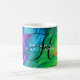 Kaffe Mugg med hårsalon eller hårfrisör inspirerad bakgrund; hår färg av lila, blått, grönt och orange. Ditt första namn visas i svart, vitt. - Typsnitt och färg kan ändras. Matchande kontorstillbehör säljs separat. Design HAMbyWhiteGlove alias HAMbWG.