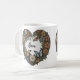 Personlig hjärtformade kaffe mugg med utrymme för två namn, designat av HAMbyWhiteGlove aka HAMbyWG eller HAMbWG