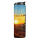 Personligens vattenflaska med cykelridergrafik och en solnedgång. Lägg till din persons namn vid prompten! Från HAMbyWhiteGlove aka HAMbWG