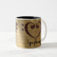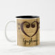 Kopparbasens dubbla- slinghjärta presenteras över en sol-kyld guld vintage lakan musikbakgrund. Elegant Guzheng-kaffet mugg ger en perfekt presentidé för din favoritspelare i Gu zheng, eller fläkt för detta unika kinesiska stränginstrument.