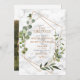 Modern och trendig, den här söt bröllop spara datum-kortsdesignen har en ytlig koppargeometri som är förskönad med vattenfärgen eucalyptus greenery, över en faux vit marmor bark struktur. Kortets baksida innehåller ditt favoritfoto på förlovningen. En del av en matchande bröllop-svit. Inbjudningskort för Elegant av upphovsrätt, alla höger reserverade.