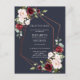 Låt dina gäster veta om din datumändring med stil med detta annonskort som har en falsk koppargeometri prydd med akvarell-eukalyptusgrönska och burgunder- och rosa blomsterarrangemang över en modern marinblå textur. Baksidan av vykortet tillåter din returadress och personliga meddelande. Copyright Elegant Invites. Med ensamrätt.