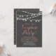 Fira din speciella dag med denna stilrena överraskningsinbjudan till årsfest! Denna design har en stilren script-typografi och ljust sladdbelysning på en mörkgrå bakgrund. Perfekt för en trädgårdsfest, ladufest eller vilken överraskningsfest som helst.