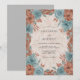 Varm terrakotta och sval dammig blå toner blandas i denna jordnära botaniska design. Måleriska dahlior och rosor skapar ett frodigt blomsterarrangemang med detaljerade kronblad och mjukt lövverk. Denna palett frammanar en rustik höststämning, perfekt för en utomhus- eller säsongsbetonad miljö med en bohemisk estetik.