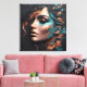 Det är en fängslande porträtt av en vacker kvinna. Abstrakten visar en blandning av koppar- och turkospinnar som är lätt att framhäva för perfektens ansiktskonturer. Upplev hur vacker denna unika sammansättning är