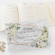 I modern och trendig har den här bröllop-gästboken en komplex koppargeometri som är förskönad med vattenfärgsvit blommigt och en eukalyptus grönaktig blommigt över en faux vit marmor struktur. Copyright Elegant Inbjudan. Alla höger reserverade.