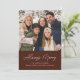 Ett enkelt kort för helgdag som visar familjens foto överst i designen. Uttrycket "Alltid merry" visas i ett handskrivet vitt skript med en mörk brun bakgrund. Julkortet återgår till visningen varje år i vitt brev med ytterligare ett foto.