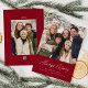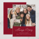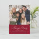 Ett enkelt kort för helgdag som visar familjens foto överst i designen. Uttrycket "Alltid merry" visas i ett handskrivet vitt skript med kranbärsbakgrund. Julkortet återgår till visningen varje år i vitt brev med ytterligare ett foto.