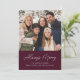 Ett enkelt kort för helgdag som visar familjens foto överst i designen. Uttrycket "Alltid merry" visas i ett handskrivet vitt skript med mörkens lila bakgrund. Julkortet återgår till visningen varje år i vitt brev med ytterligare ett foto.
