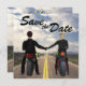 Den här unika Save the Date-inbjudan har en vacker väg- och fält-sceneri med en pojke och ett flickpar på motorcyklar som håller händer. Pojken har brunt hår och flickan har blond hår. Andra hårkombinationer i färg finns tillgängliga på begäran! Perfekt för ett biker par! Anpassa enkelt detta Spara datum med all information om bröllop.