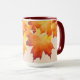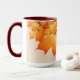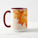Utformningen av den här kombinationen mugg bygger på en målning av två Maple löv som faller av mig. De uppvisar en blandning av många varma färg tillsammans med den hårda svinnen i brunt. Höst färger är över snabbt, men med den här designen på den här produkten kan du njuta av dem hela året!