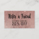 Kopplar ihop ser denna moderna och glamorösa faux utskrivavet rosa guld och glitter lutning, ett kort för vänrabattremiss är perfekta för den moderiktiga och stilfulla företagsägaren. Detta innegrej och professionellen tittar kort är perfekten långt som visar dina kunder som du att bry sig om deras affär. Skräddarsy detta kort för någon affär, precis redigera texten och tillfoga ditt egna personligt specificerar.