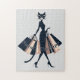 En fashionabel, antropomorf katt avbildas bärande på flera shoppingpåsar, med frasen "Köpterapi" skriven på en av påsarna. Katten är stilfullt klädd och bär solglasögon, och utstrålar en känsla av sofistikation.