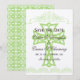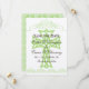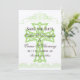Kortet bröllop spara datum med temat kor har en kor-design med calligraphy gräns och många text fält som du kan anpassa med dina personuppgifter på framsidan medan baksidan har ett mörkt mönster i grönt och brunt.