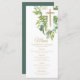 Blommigt Baptism-menyn i den grekiska botaniska Kor-Eleganten har ett vitt kor på grönt-handmålade eukalyptus löv och grönt med din menyinformation nedan. Anpassa genom att redigera texten i textrutorna. Designad av ©2022 Evco Studio www.zazzle.com/store/evcostudio