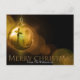 Anpassa framsidan och baksidan av detta vackra julkort. En underbar kristen design med Kristus kor reflekterad i en gyllene jul boll med ditt namn nära grund under ett mousserande guld God jul. Du kan anpassa hälsning, returadressen och namn i manuset nära grund med plats för att lägga till en personlig anteckning.