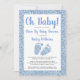 Fira mamma-to-be med den här söta pojke-enheten genom duschinbjudan med en blå faux-glitter-bakgrund, "Åh Baby!" skrivet i ett blått skript och blå faux glitter baby fötter. Du kan anpassa enheten med hjälp av information och en kontakt för mer information.