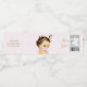 Vattenflaska av flickorna genom babydusch med en god brunettmask med flicka på en söt rosa punktbakgrund med näringsvärdesmärkning och text. Du kan ändra texten och lägga till en egen.