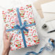 Kreativet som kör spåret och julklappen i fält som innehåller Claus springer tävla, omgiven av helgdag och kakor.