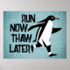 Springa Thaw Senare motivationen poster med en söt penguin. Design av Ellen Marcus