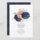 Coral - Rustik persika och marin blått blommigt bröllopsinbjudan med faux foil silver foliage designad för att snabbt och enkelt anpassas till dina händelsespecifikationer.