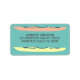 Den här returadressetiketten är perfekt för kayakers. Den innehåller illustrationer av kajaker i peachy coral och blek gult mot en teal- eller turkosidblått bakgrund med ditt namn och adress i mitten i fet kol-grått-skrift.