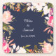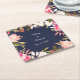 Koral Rosa Blommigt Gräns på marinblått Bröllop Underlägg Papper Kvadrat