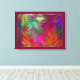 Strålande orange, rosa, blå, grön, lila, gul och turkos fraktalmönster som en korallreva i uppror, med dekorativ guldram innehållande en slät ädelsten.