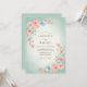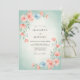 Denn romantiska designen har en delikat kaskad av akvarell korall och mjuka blå blommor med släpande grönska. Den luftiga, lysande bakgrunden frammanar en känsla av mjuk elegans. Nyanser av rosafärgat lägger djup till det blomsterarrangemanget.