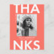Trendig, ett modernt studenten-tack som du har med student-fotot med "tack" i fet vit stil och korall bakgrund. Anpassa framsidan av fotot. Tack för att du skrev på studenten genom att lägga till student namn, namn och studenten. Baksidan av fototacket i studenten innehåller returadressen med utrymme för ditt skrivna eller handskrivna meddelande.
