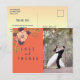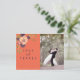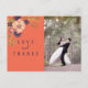 Rustik, elegant, modern mörkblå och korallfärgade bröllop tackkort, med akvarell rosablommor och eget foto.
