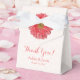 Korall gerbera tusenskönor (gerber tusenskönor) och subtil vit spets personlig bröllop tack förmån låda. Du kan anpassa brudens och brudgummens namn och bröllopsdatum. En vacker blommig blommig design. Perfekt som en bröllopspresent för en vår- eller sommarbröllop.