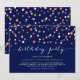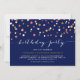 Korall & Guld Konfettiprickar Blå Födelsedagsfest Inbjudningar