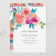 Korall och fandango (lila) akvarell rosor och peonies bröllopsinbjudan med turkos blad. Perfekt för alla teman eller trädgårdsbröllop.