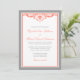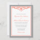 Korall- och grå bröllopsinbjudningar med svängande inbjudningar