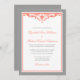 En formell bröllopsinbjudan med en elegant svängande flourish. Visas i grått och korall.