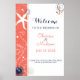 Korall och marinblå strandbröllopsskylt poster