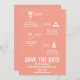 Berätta för alla dina gäster lite om din relation ~ kanske några roliga fakta de inte vet! Dina gäster kommer att älska denna roliga och nyckfulla Spara Datumet i färgen Korall / Persika och Vit! För förfrågningar om anpassade designändringar av den oberoende designern, vänligen maila paula@labellarue.com INNAN du anpassar eller beställer.