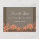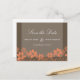 Elegant och raffinerad Rustic Floral Save the Date-brevkort med en tvåtonad digital konstpanel i mörkbrun bakgrund och en vacker kaskad av vackra blommor som ramar in designens nedre del i orange. Denna söta design är perfekt för att tillkännage ett säsongsbetonat bröllop med ett utomhus- eller trädgårdstema. Lätt att anpassa, lägg helt enkelt till detaljerna om ditt bröllop i de medföljande textfälten. Klicka på "Anpassa"-knappen för att hitta ytterligare anpassningsalternativ.
