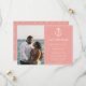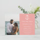 Detta nautiska monogram-fotots spara-datum-meddelande kommer med en enkel textdesign, ett enkelt nautiskt ankare för brudens och brudgummens monogram i en modern ram som väntar på din foto och dina bröllopsdetaljer för att anpassa. Ytterligare färger tillgängliga med denna design. Bra för par som kommer att ha ett maritimt tema bröllop.