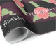 Korallros blommig presentpapper med ljusa hallon och svarta ränder, bakgrunden och ränderna kan bytas till valfri färg och den vita texten Grattis på födelsedagen kan ändras till vilket namn som helst eller speciellt meddelande för alla tillfällen. Texten är också borttagbar.