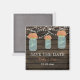 Rustic Barnwood, farligt ljus med korallblommor i en burk bröllop spara datum-mason-magnet. Matchningsprodukter finns också tillgängliga.