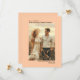 Detta kort för att spara datumet är enkelt, modernt, minimalistiskt och klassiskt. Det har ditt vertikala eller porträttorienterade foto på en blek orange eller korallfärgad persikabakgrund med era namn, bröllopsdatum och plats samt titeln "Spara datumet" arrangerade symmetriskt ovanför och nedanför bilden. Konstnärligt och sofistikerat är detta kort ett underbart sätt att låta era familjer och vänner veta om ert kommande bröllop.