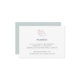 Enkel och elegant kustinspirerad bröllopsfestlokalens bifogade kort med detaljer om mottagningen (tid, lokal och adress) i klassisk marinblå och grå, krönt med en pastell akvarell havskorall illustration. Utformad för att samordna med vår Korallrev bröllopssamling.