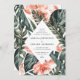 Korallrosa och tropisk bladverk bröllopsinbjudan. Del av en fantastisk elegant bröllopssvit. Modern grön, blå och korall tropisk kollektion.