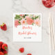 Denna vackra och eleganta servett har akvarellmålade korallrosa röda rosor och grönska. Texten kombinerar handskriven script och serif-typsnitt för en stilren och modern look. Detta är perfekt för en rustic bröllopsdusch under våren eller sommaren.