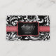 Korallrosor på svartvit blom- damastast salong visitkort