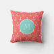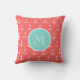 Korallvit ankrar mönster, grön Monogram för Mint Kudde