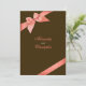 Koralt rött band på chokladbrun bakgrund design. 5" x 7" Elegant, helt anpassningsbar för användning för bröllopsinbjudningar, spara-datum, tillkännagivande, s.v.p., kort för bröllop, fester, brudshow, förlovning och andra speciella tillfällen.